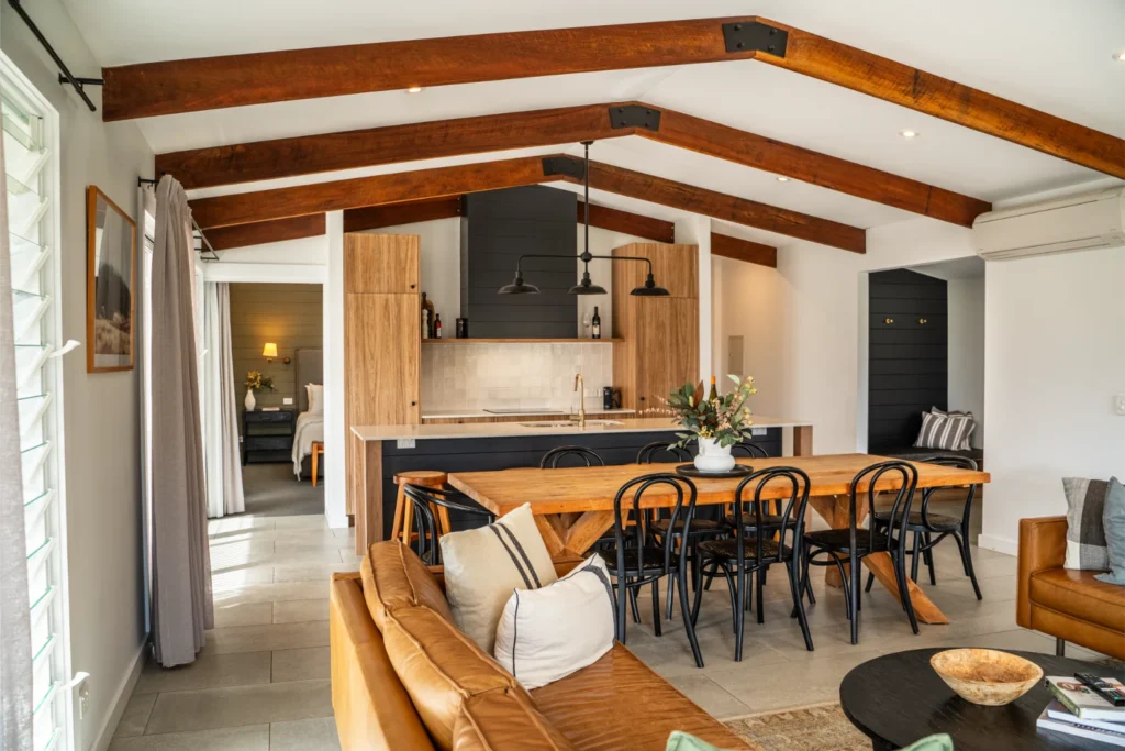 Step inside the Mountain Retreat room at The Lodge Bellingen , and you’ll feel it instantly — warmth, stillness, and that quiet kind of luxury that doesn’t need to speak loudly to be noticed.